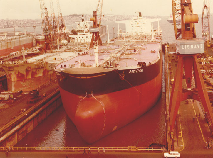 Reparando en el dique seco del astillero LISNAVE en Lisboa.