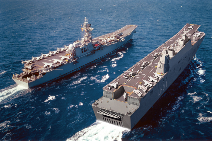 - Aviones: Hasta 33 aviones y helicópteros. Helicópteros AB-212, Sea King y H-500. Aviones VSTOL Harrier AV-8A y AV-8B.