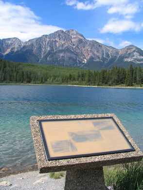 Placa conmemorativa en Patricia Lake, Canada.