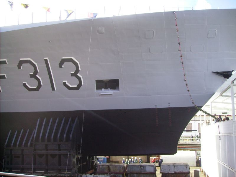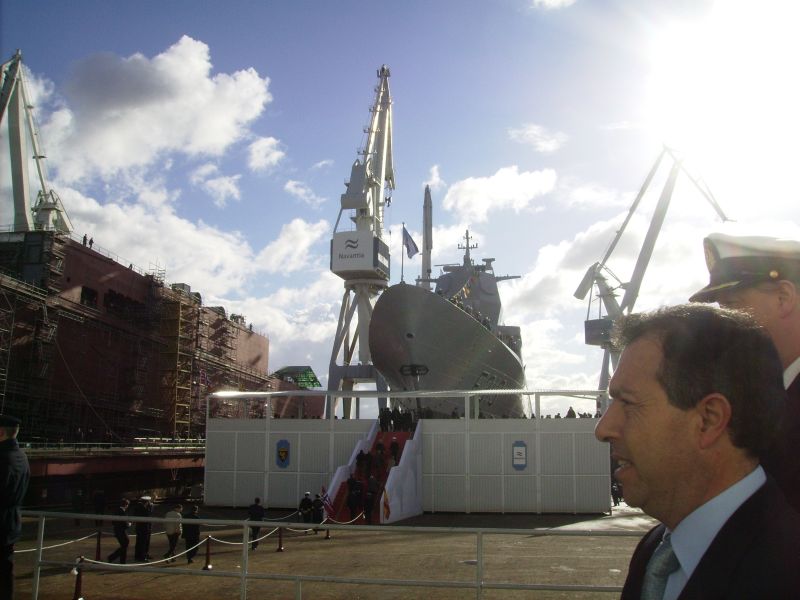La fragata fue botada hoy con un grado de construcción del 75% superior al de las tres unidades anteriores y la fecha prevista para su entrega definitiva es septiembre del 2008.