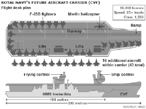 El Reino Unido tiene prevista la construcción de dos nuevos portaaviones, proyecto CVF, que sustituirán a los tres clase Invincible: HMS Invincible (R-05), HMS Illustrious (R-06) y HMS Ark Royal (R-07), fueron diseñados en la época de la guerra fría cuando las necesidades se centraban en la defensa antisubmarina en el Atlántico Norte. La limitada capacidad de su grupo aéreo no cubre las nuevas necesidades estratégicas actuales, por otra parte están llegando al final de su vida útil.