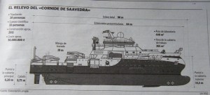 Propulsado por una cometa gigante y placas fotovoltaicas, capacitado para operar vehículos submarinos por control remoto, diseñado con góndola por debajo del forro del casco y quillas retráctiles para transportar los equipos más sofisticados de investigación marina. Esta es la tarjeta de presentación del que será el sustituto del vetusto Cornide de Saavedra y nuevo buque insignia español de la investigación, que se completa con datos como que tendrá una eslora máxima de casi 90 metros, una manga de 19 y una capacidad de navegación oceánica y habilitación para 33 científicos y 20 tripulantes. El diseño ha corrido a cargo de la empresa Aries Industrial y Naval Servicios, que ha desarrollado para el Instituto Español de Oceanografía (IEO) un boceto muy avanzado de lo que será la nave al final de su proceso de construcción.