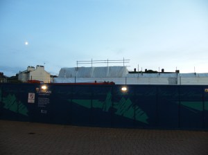 Grúas trabajando en el dique de abrigo