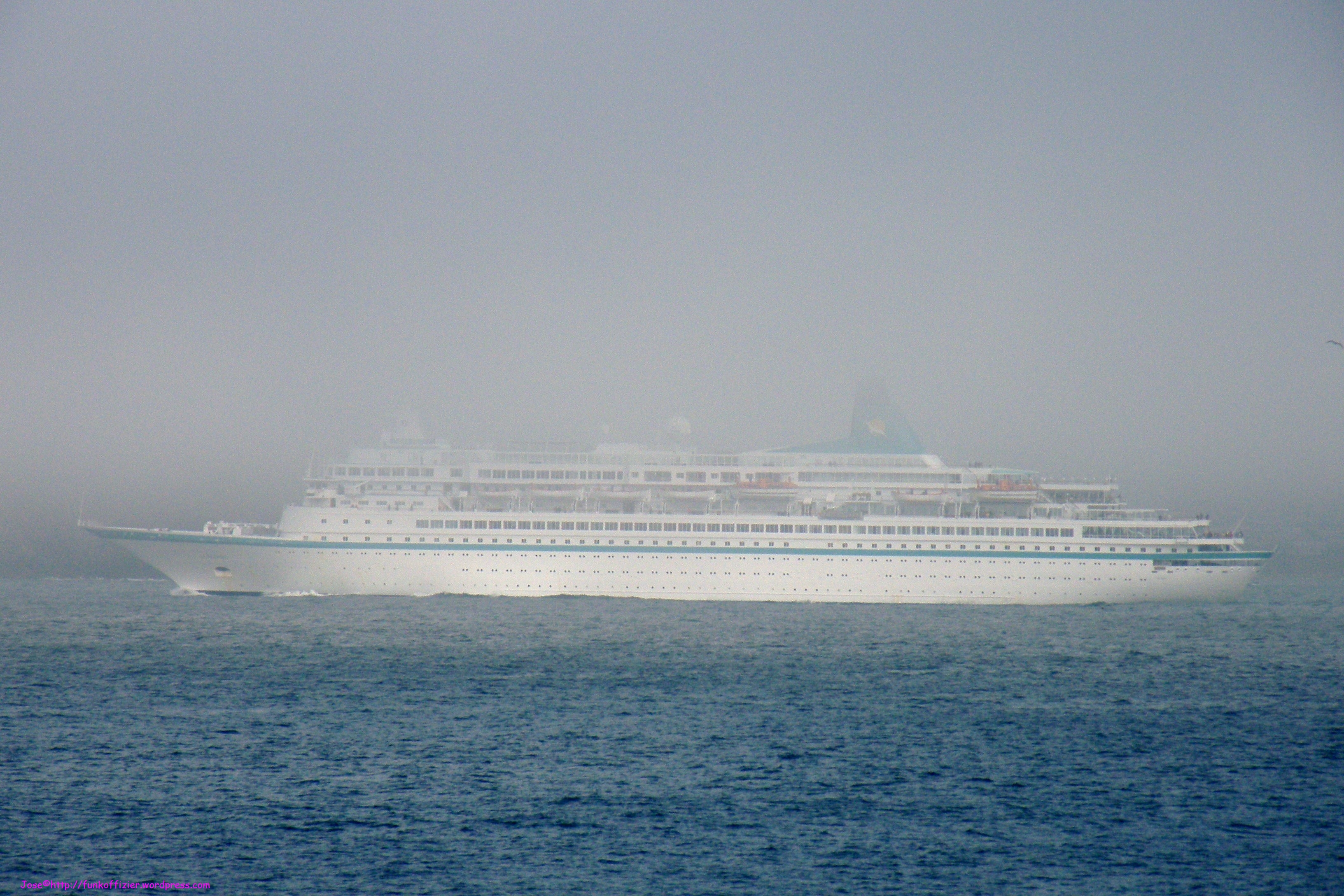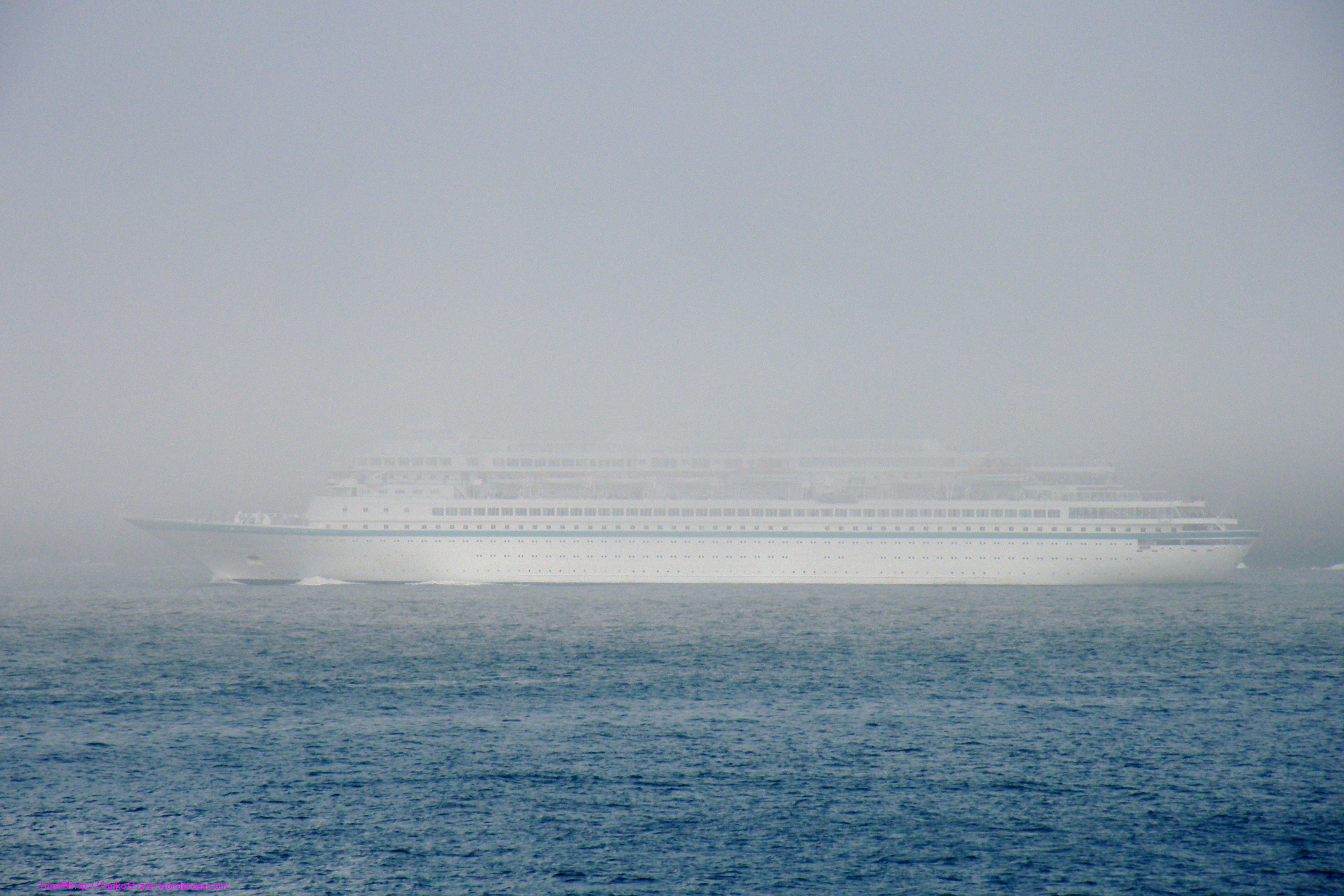 Para recordar al «Albatros», cuelgo estas fotos que tomé el 16 de octubre cuando salía de la ría de A Coruña y un banco de niebla se lo tragó ante mi cabreo por no poder realizar una buena foto.