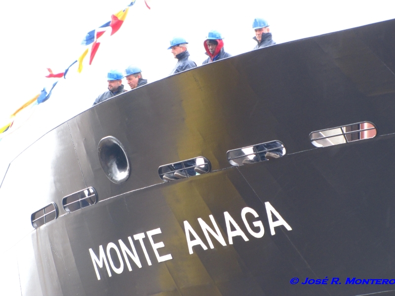El MONTE ANAGA es un buque de 87,16 metros de eslora, 15 m de manga, 7 de calado, 2637 tons de registro bruto, doble casco y doble fondo, bandera: Madeira.