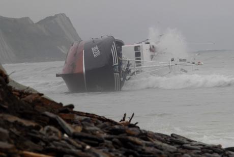 Rescatados los nueve tripulantes de un pesquero embarrancado en Deba.