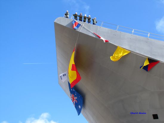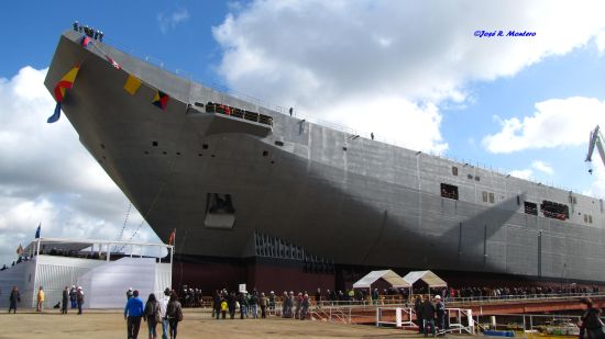 18 febrero, 2011 a las 7:15 pm | Publicado en Astilleros, Barcos, Botaduras, Construcción Naval | 2 comentariosAyer, 17 de febrero de 2011, tuvo lugar la botadura del Buque de Proyección Estratégica (BPE) CANBERRA, el acto estuvo abierto al público. El buque fue amadrinado por la señora Vickye Coates, viuda de un contralmirante que estuvo al mando del último HMAS CANBERRA. A las 15:46 hora local, el impresionante buque se deslizó por la mayor grada del astillero Navantia Fene-Ferrol. Al acto asistieron entre otras autoridades, la embajadora de Australia en España, Zorica McCarthy; el jefe de la Real Marina Australiana, vicealmirante Russell Crane; el jefe del Estado Mayor de la Armada (AJEMA), Manuel Rebollo; el presidente de la SEPI, Enrique Martínez Robles; el director comercial de BAE Systems, David Gillard; el jefe del programa anfibio y logístico de la Defensa australiana, Phillip Brown; los embajadores de Japón y Canadá en España; el delegado del Gobierno en Galicia, Antón Louro; y los alcaldes de Ferrol y Fene.