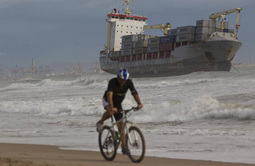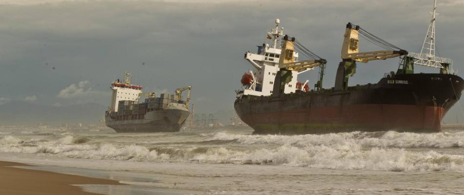 Dos buques mercantes varan en la playa del Saler debido a un fuerte temporal