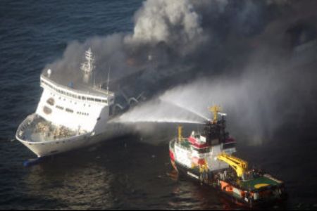 Un ferry se incendió cerca de la costa alemana produciendo un vertido de 160 toneladas de fuel, sus 249 pasajeros sin embargo fueron rescatados.