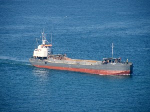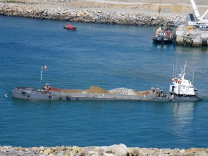 Gánguil transportando su carga para depositar en el fondo marino de la escollera